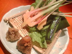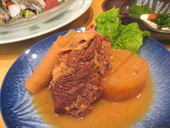(つきだし、かつおのたたき、とんこつ、ちゃんこ鍋、お新香、ビール1本)